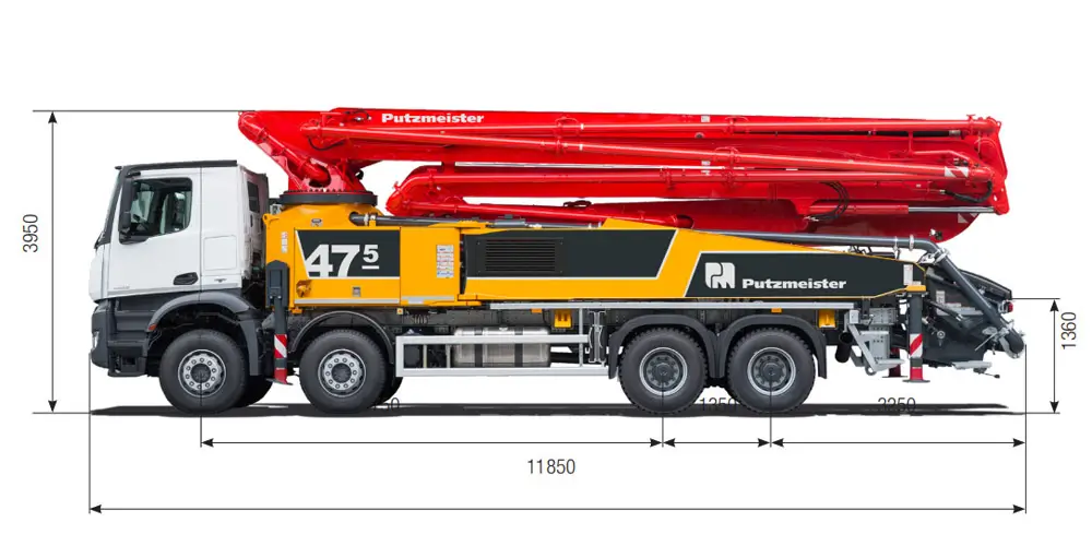 Putzmeister M47-5 on neljateljeline autobetoonipump, mis ühendab kerge konstruktsiooni, suure ulatuse ja erakordse töökindluse. Kaaludes alla 32 tonni, on see üks kergemaid masinaid oma klassis, võimaldades suuremat kasulikku kandevõimet ja madalamaid ekspluatatsioonikulusid.