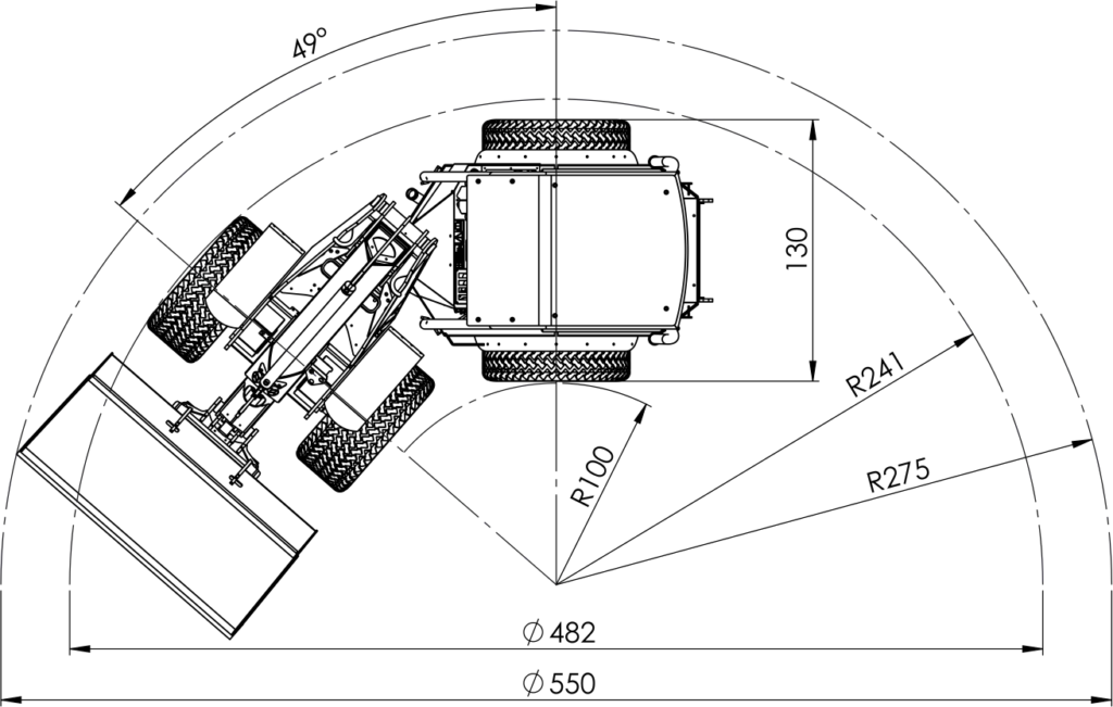 Norcar a7240 standardrehvid on 27 × 8,5 – 15 IN, mõeldud raskete koormuste talumiseks ja tööks kõvematel pindadel (asfalt, betoon, tihendatud kruus). Masina laius on 105 cm, mis annab hea tasakaalu: piisavalt kompaktne, kuid stabiilne ja võimekas.