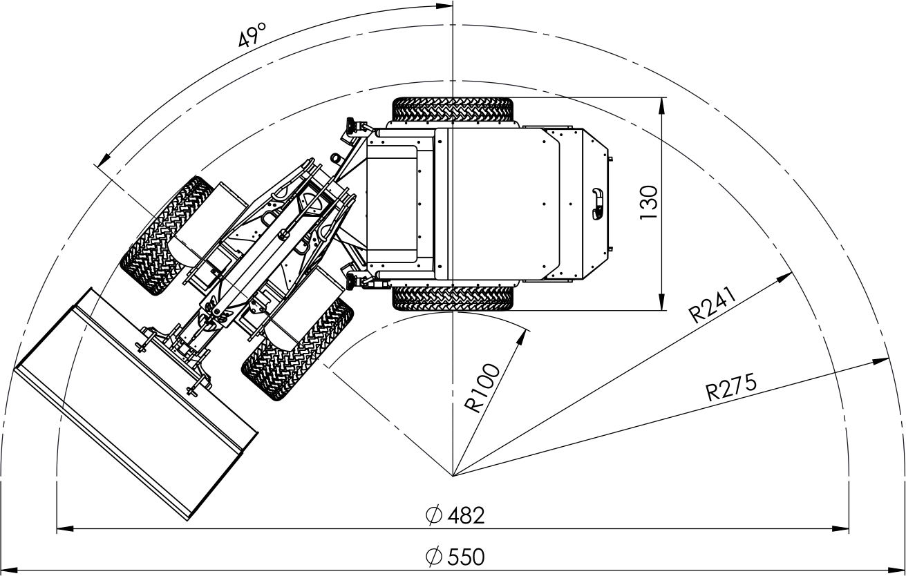 - Rehvid ja laius (näide)27×8,5–15 IN; masina laius 105 cm (rehvist sõltub)