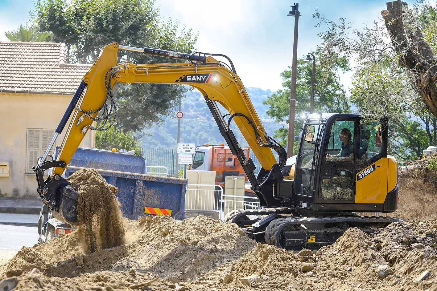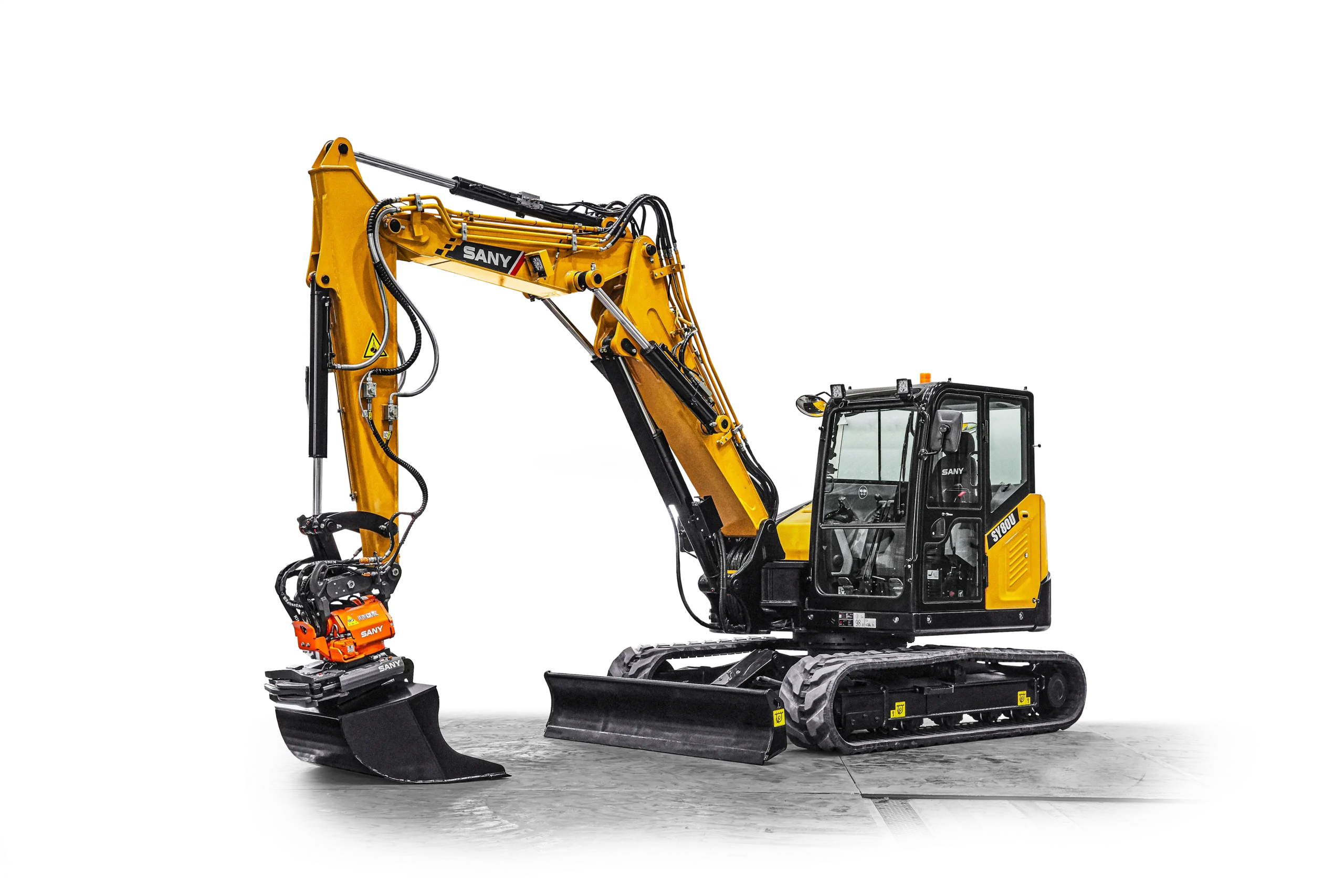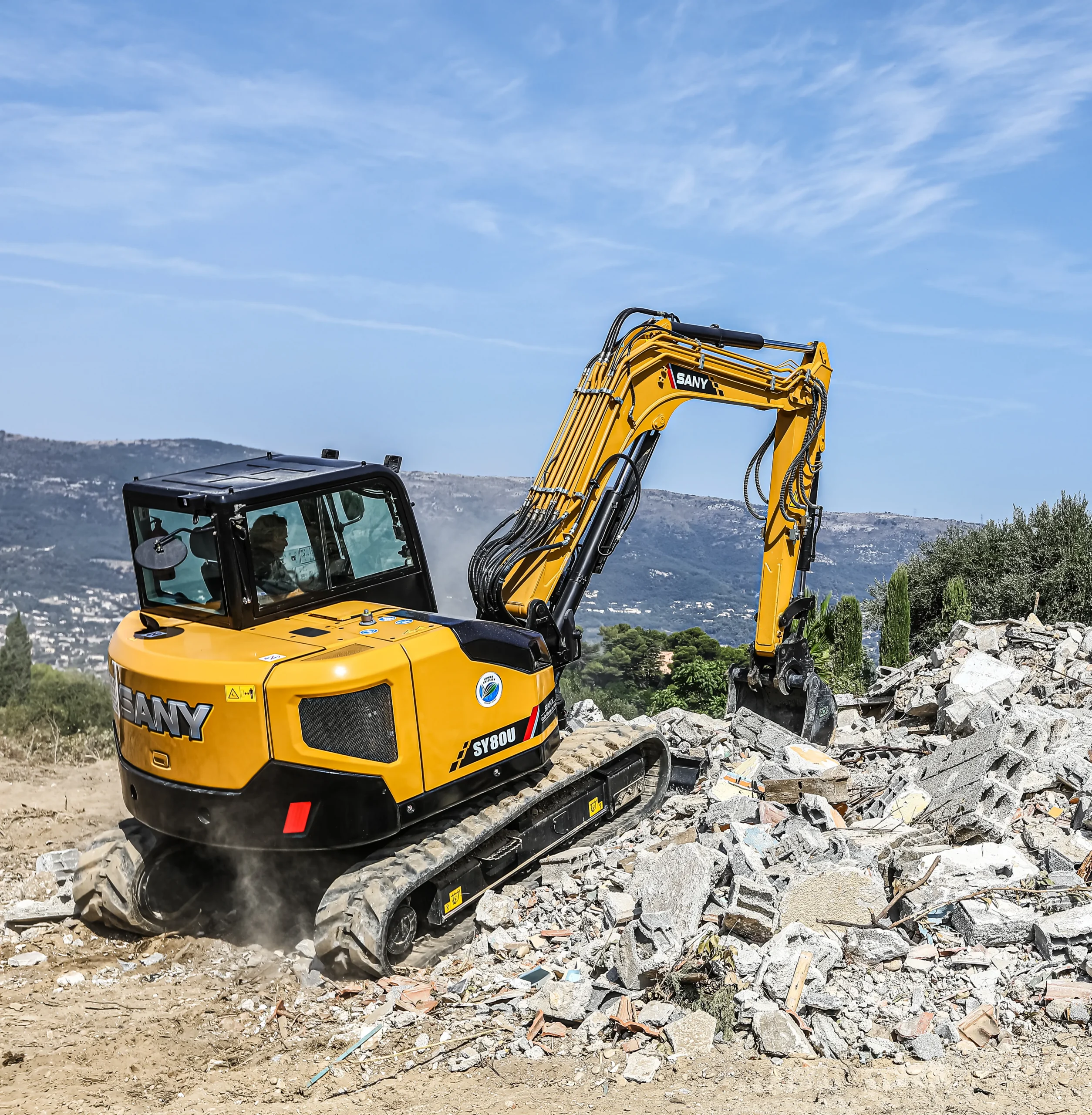 SANY SY80U on keskmise suurusega lühikese tagaosaga ekskavaator, mille kompaktne pöörderaadius ja stabiilne alusvanker teevad selle tugevaks tegijaks kitsastes tingimustes. Ümarate joontega lühike tagumine osa võimaldab töötada vahetult seinte, liikluse või muude takistuste kõrval, ilma et vastukaal ulatuks üle roomiku laiuse. Metoodiline metallitöö ja robotkeevitused annavad raamile ja kinnitustele pika tööea; silindrikatted ja lukustatavad hooldusluugid kuuluvad juba tehasest. SANY rõhutab ka pikaajalist töökindlust: standardvarustuses on LED-töötuled, tugev pöördraami sõlm ning hoolduslahendused, mis hoiavad masina võimeka ka karmides oludes.