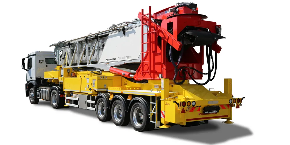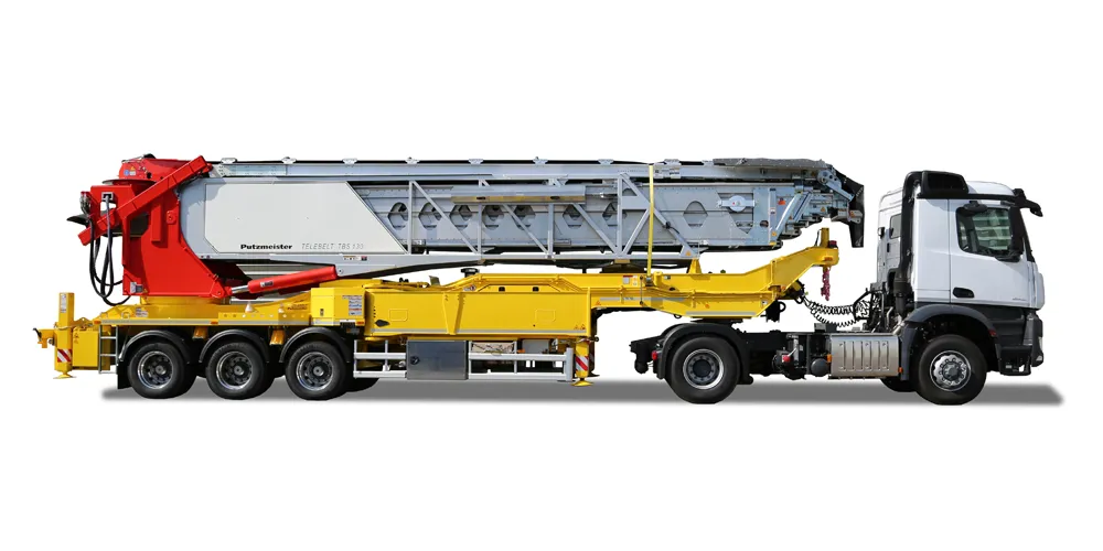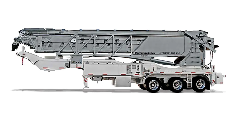 Putzmeister Telebelt TBS 130 on maailma ainus poolhaagisele paigaldatud teleskooplintkonveier, mis võimaldab paigaldada väga erinevaid materjale kiirelt, täpselt ja turvaliselt. Tegemist ei ole tavalise betoonipaigaldusmasinaga, vaid universaalse materjalilogistika lahendusega, mis suudab transportida betooni, liiva, killustikku, rullbetooni, frakkingsandi, mullatäidet või isegi ehitusprahti – kõik ühest masinast ja ühest asendist, ilma segusid muuta või lisatehnikat kasutada.